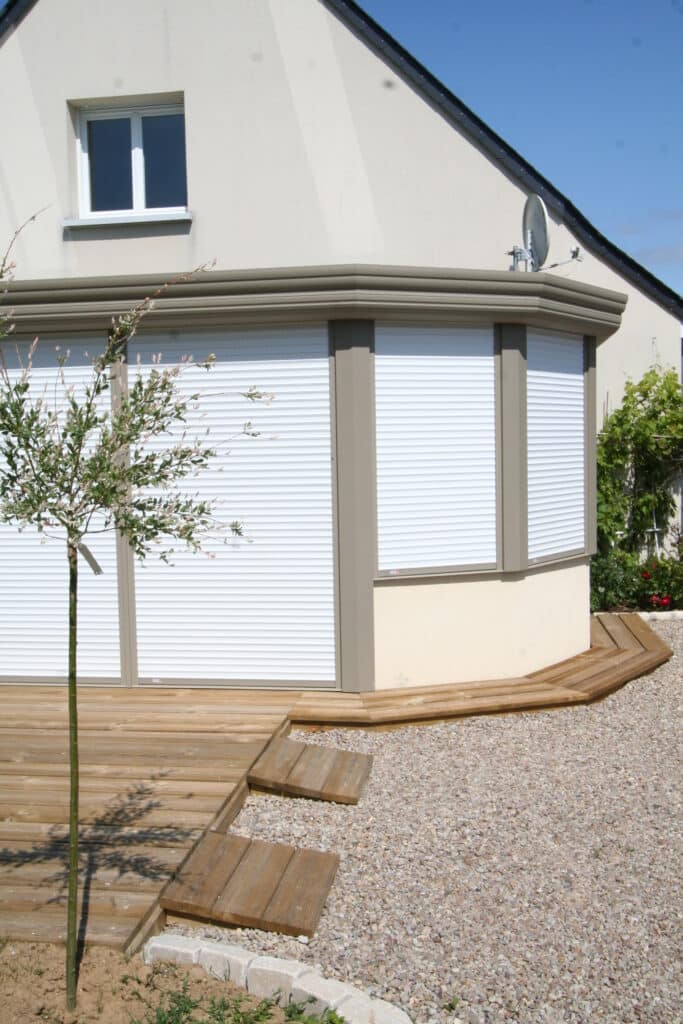 - Volets Roulants Intégrés : Parfaits pour la toiture ou les façades, ils sécurisent la véranda et offrent une occultation totale la nuit, créant un matelas d’air isolant supplémentaire. Nos réalisations, comme celle d’Ambarès-Lagrave, démontrent l’élégance de cette intégration.